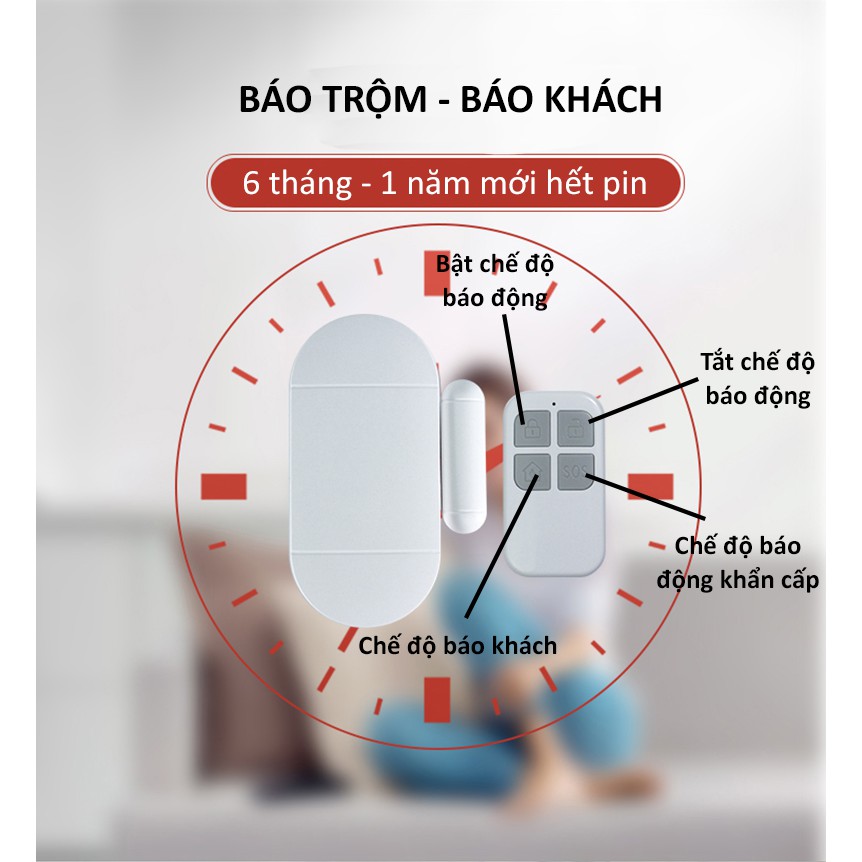 -Ngoài chức năng báo khách, thiết bị còn có chức năng báo động khi có người mở cửa đi vào.