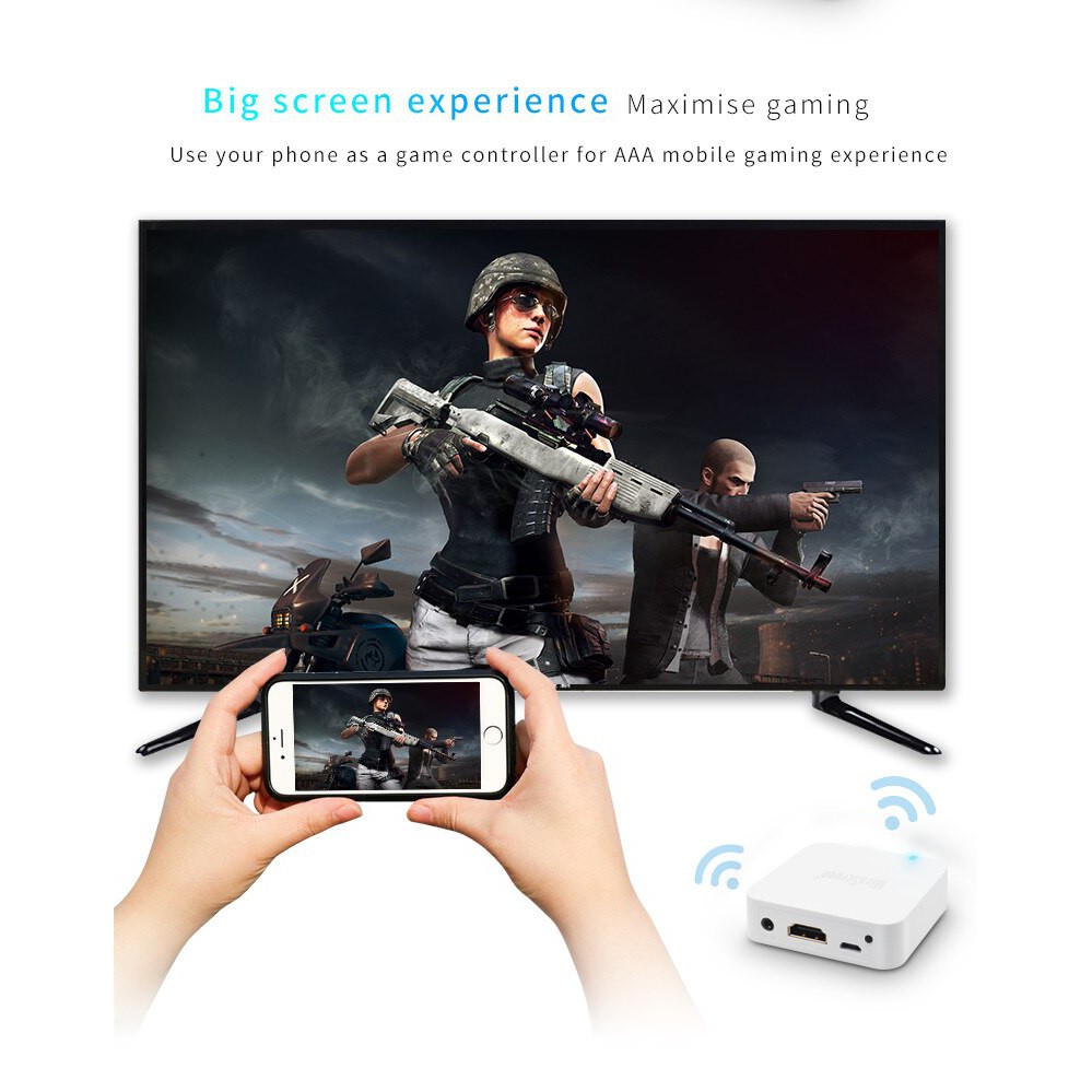 Phản chiếu không dây âm thanh, video, hình ảnh của điện thoại thông minh iOS và Android, máy tính bảng lên HDTV hoặc máy chiếu màn hình lớn.Hỗ trợ kết nối không dây 802.11b / g / n, WiFi 2.4GHz, tín hiệu mạnh, hỗ trợ hiển thị video, âm thanh, hình ảnh, game không dây.