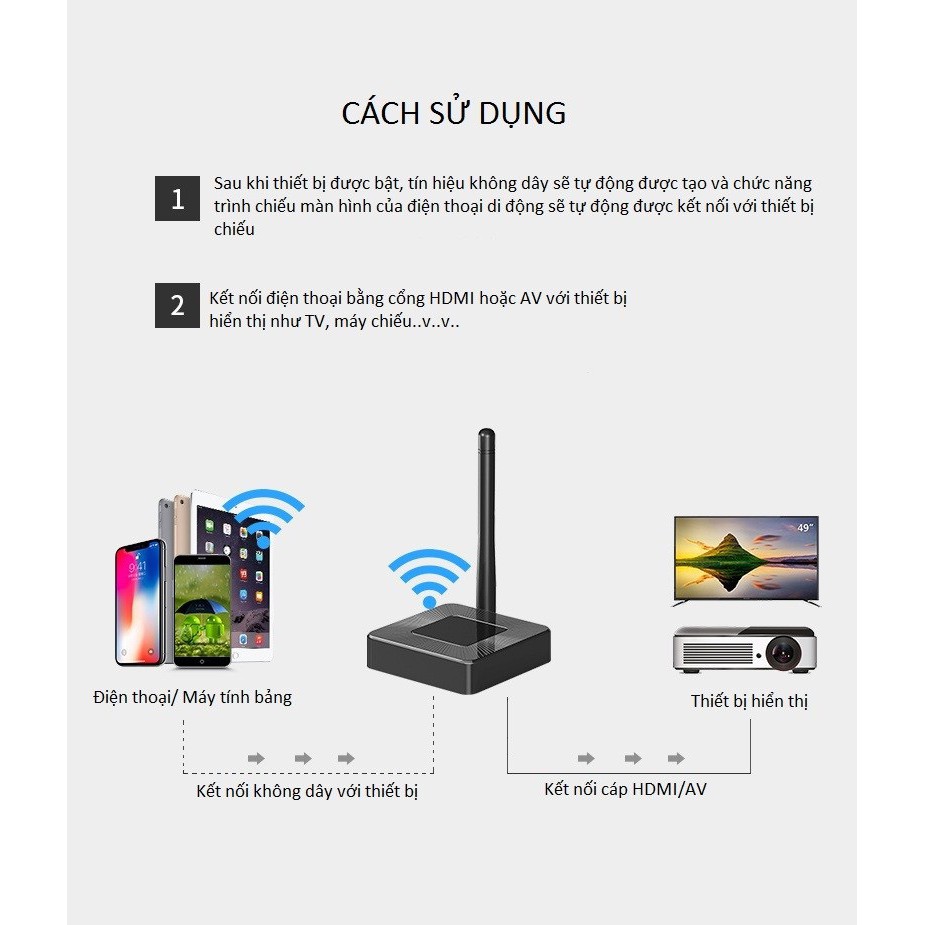 Giới thiệu Thiết Bị HDMI Không Dây Kết Nối Điện Thoại Với TV Dongle Q4 Hỗ Trợ Kết Nối AV
