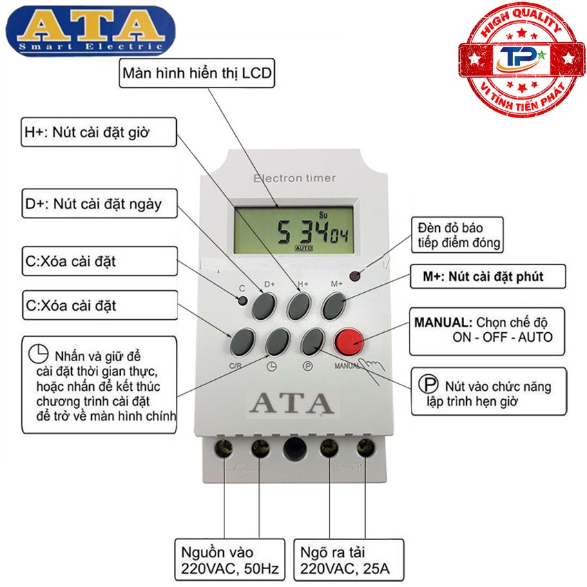 Thiết bị hẹn giờ tắt mở điện thông minh tự động.Thương hiệu: ATA Smart Electric