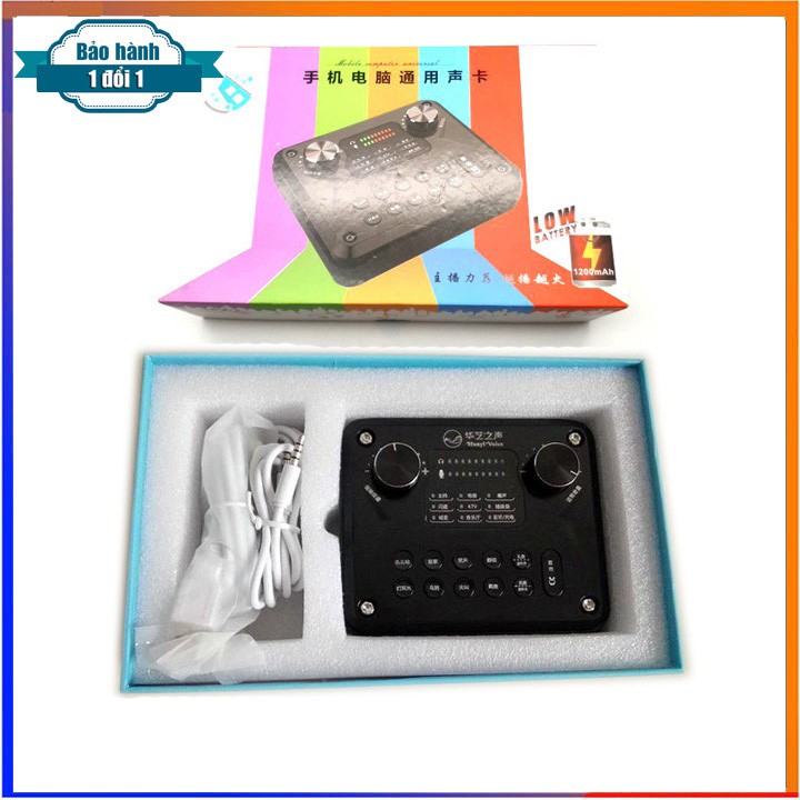 - Sound card thu âm là sản phẩm card âm thanh tương thích với nhiều thiết bị như smartphone, laptop, pc, máy tính bảng. Với tính năng làm méo giọng hát, thành giọng trẻ em, người già, Khả năng chèn các hiệu ứng âm thanh vào các đoạn thu như tiếng vỗ tay, tiếng hò reo, nhạc cổ vũ, tiếng chim kêu... với nhiều hiệu ứng âm thanh, sẽ đem lại cho bạn trải nghiệm thu âm vô cùng thú vị.