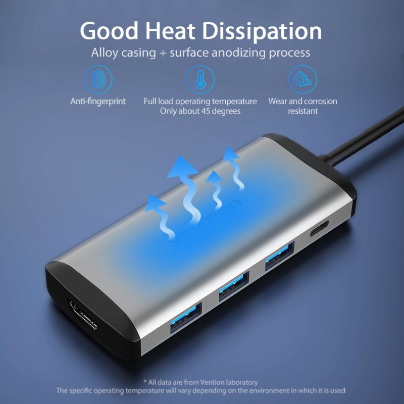 Giới thiệu Thiết bị kết nối đa cổng Vention chuyển đổi USB Type C sang 4K HDMI 5 trong 1 cổng sạc PD USB 3.0
