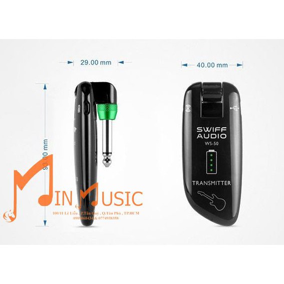 Thiết bị kết nối guitar không dây SwiffCông dụng: thay thế dây jack khi kết nối các thiết bị âm thanh, độ cách xa lên đến 50m siêu dài. Chất lượng âm thanh nhanh không hề bị trễ tín hiệu. Phù hợp cho khách đi show đi diễn mà không sợ bị vướng víu.