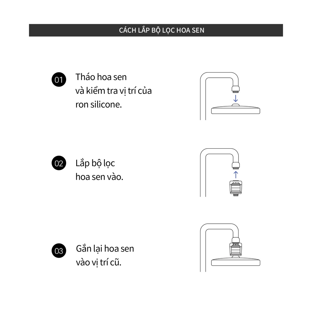 B1: Tháo hoa sen và kiểm tra kỹ vị trí của ron silicone.