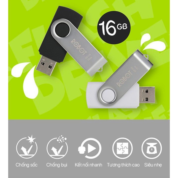USB 8GB/16GB/32GB ROBOT RF108/RF116/RF332 Tốc Độ Ghi Hơn 6M/S – Tốc Độ Đọc Hơn 10M/S8GB&16GB: