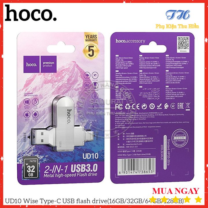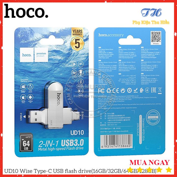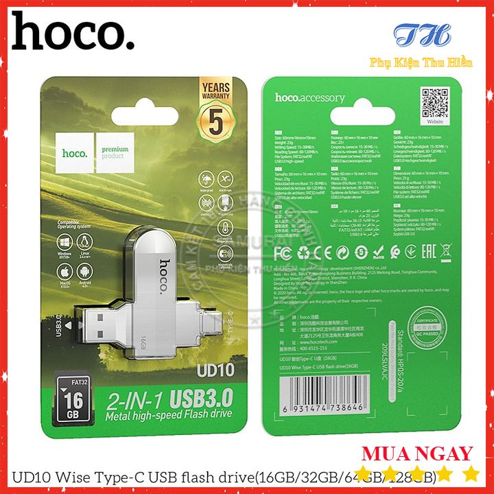 Thiết Bị Lưu Trữ USB Hai Đầu (USB+ Type-C) Hoco UD10 loại 3.0 16/32/64GB Tốc Độ Ổn Định - Chính Hãng - Bảo Hành 5 NămTHÔNG TIN SẢN PHẨM: