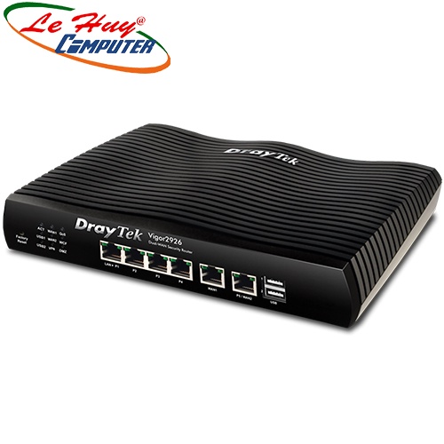Vigor2926 series là bộ định tuyến Dual WAN tích hợp tường lửa bảo mật giúp đảm bảo kết nối Internet ổn định. Thiết bị có 2 cổng Gigabit Ethernet WAN và 2 cổng USB có thể kết nối Internet thông qua USB 3G/4G/LTE. VigorV2926 Series cho phép kết nối đồng thời lên đến 4 đường Internet, cân bằng tải hoặc chuyển đổi dự phòng. Vigor2926 series không chỉ là thiết bị kết nối Internet đáng tin cậy, mà còn là cổng kết nối tường lửa linh hoạt và máy chủ VPN, thiết bị cũng bao gồm các tính năng quản lý mạng LAN toàn diện như VLAN, quản lí băng thông (Bandwidth Management), quản lý dịch vụ (Quality of service), kiểm soát DNS, giúp Vigor2926 trở thành một giải pháp hoàn hảo cho doanh nghiệp.WAN Load Balancing & Failover