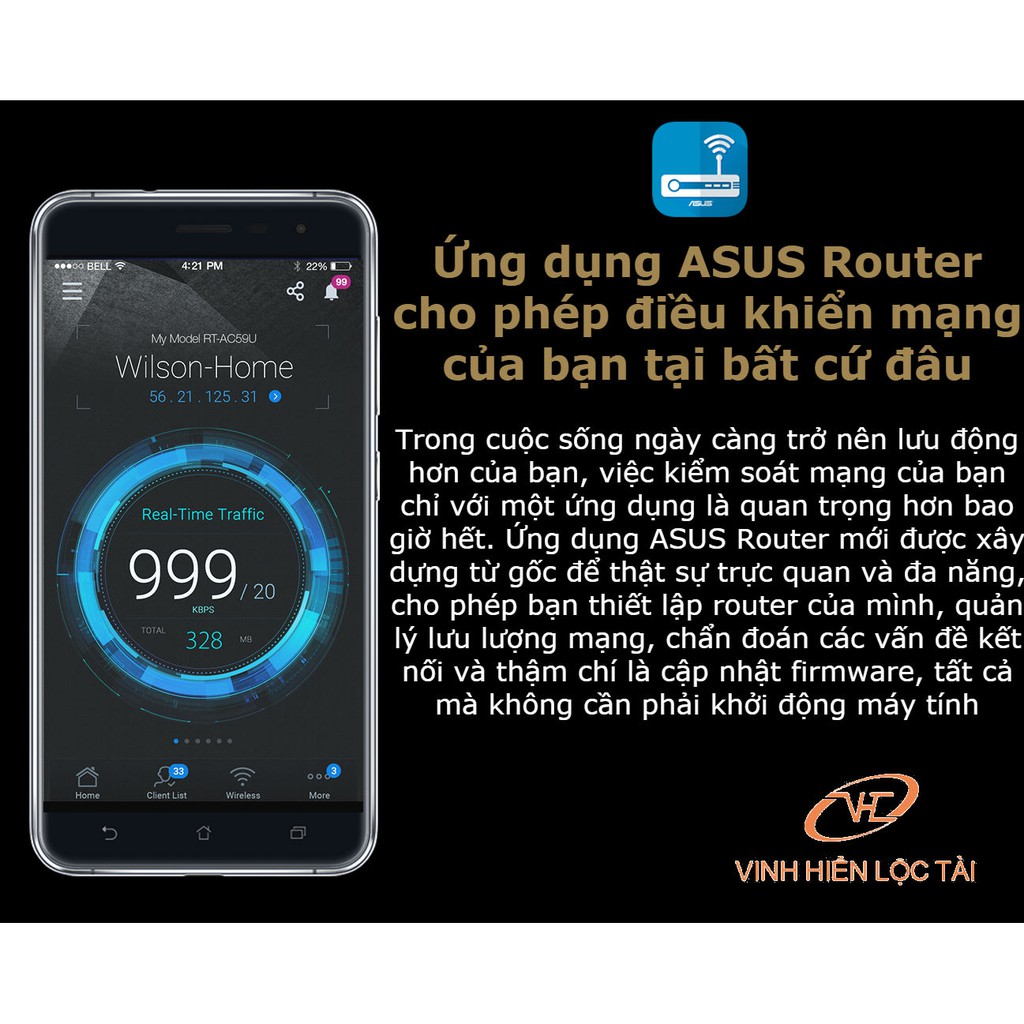 Trong cuộc sống ngày càng trở nên lưu động hơn của bạn, việc kiểm soát mạng của bạn chỉ với một ứng dụng là quan trọng hơn bao giờ hết. Ứng dụng ASUS Router mới được xây dựng từ gốc để thật sự trực quan và đa năng, cho phép bạn thiết lập router của mình, quản lý lưu lượng mạng, chẩn đoán các vấn đề kết nối, tất cả mà không cần phải khởi động máy tính.