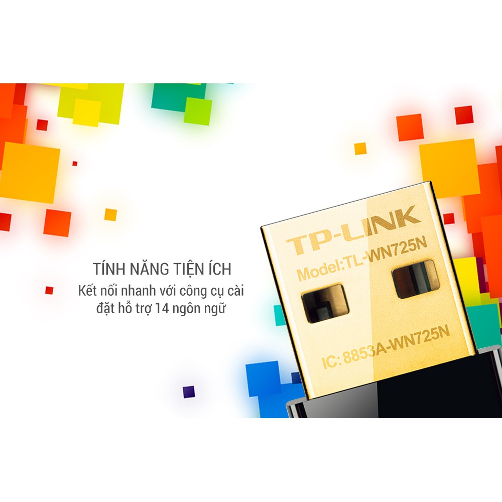 Máy tính & Laptop > Thiết Bị Mạng > Bộ Thu Wifi || Thiết bị mạng TP-Link TL-WN725N Bộ chuyển đổi USB Nano chuẩn N không dây tốc độ 150MbpsCòn hàng