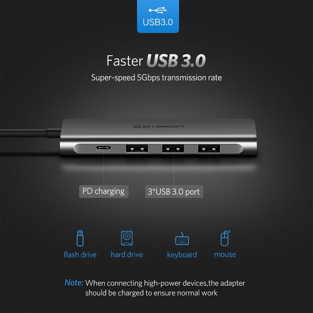 Máy tính & Laptop > Phụ Kiện Máy Tính > Bộ chia cổng USB & Đọc thẻ nhớ || Thiết bị mở rộng USB type C sang HDMI / Hub USB 3.0 hỗ trợ sạc cổng USB C Ugreen 50209 Chính HãngCòn hàng