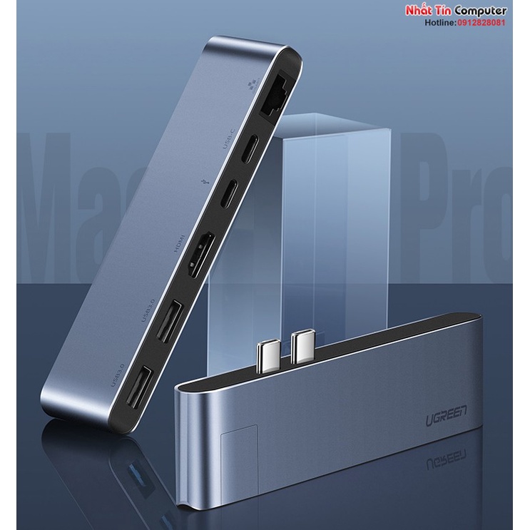 - Bộ Hub USB-C chuyển đổi đa năng Ugreen 50984 từ USB type C sang HDMI + USB 3.0 + Lan Gigabit và có cổng sạc USB type-C cho Macbook Pro của các bạn.