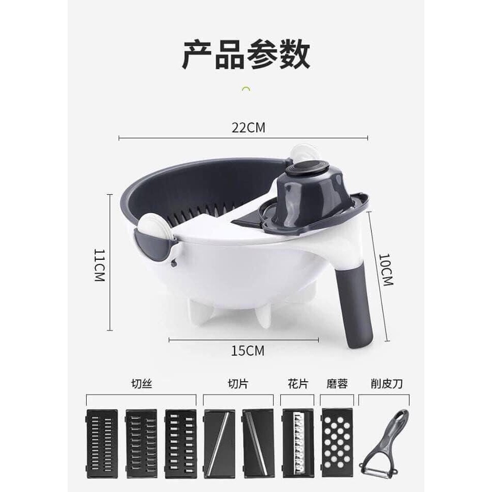 - Chất liệu: Nhựa PP, Thép không gỉ.- Sản phẩm gồm: 01 hộp chứa + 01 rổ + 01 dụng cụ mài và lọc trứng + 01 Dụng cụ giữ củ quả + 01 dụng cụ giữ lưỡi bào thái với cáclưỡi bào cắt thái các kiểu.