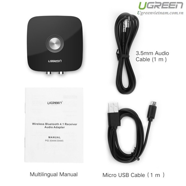 Thiết bị nhận Bluetooth Music Receiver Aux 3,5 mm stereo Ugreen 30445 Cao cấpUgreen Receiver Adapter Bluetooth 4.1 Ugreen 30445 được thiết kế để nhận nhạc từ PC, iPhone, iPad, máy tính bảng hoặc máy nghe nhạc MP3 với âm thanh nổi tại nhà của bạn, loa hoặc hệ thống giải trí với cổng 3,5 mm và cổng RCA , trong đó cung cấp một cách thức mới để dòng nhạc. Nó chuyển đổi loa bình thường của bạn thành một loa bluetooth không dây