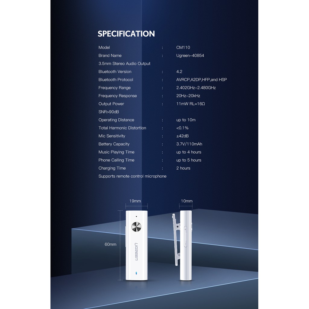 Giới thiệu [Mã ELHACE giảm 4% đơn 300K] Thiết Bị Nhận Bluetooth 4.2 Cho Loa/Tai Nghe/Ampli Hỗ Trợ Mic Đàm Thoại Cao Cấp UGREEN