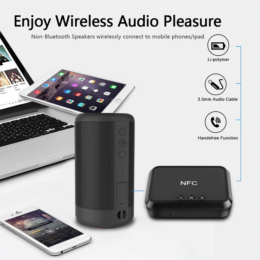 Bluetooth Box NFC BL-B10 chuyên khăc phục nhược điểm tín hiệu nhận Bluetooth, NFC BL-B10 thu Bluetooth ổn định xa trên 10m, không nhiễu âm thanh, không rè rẹt, phát tiếng mạnh mẽ, tinh tế đến từng chi tiết.Quý khách đang sử dụng các loại USB Bluetooth nhỏ gọn nhưng âm thanh nghe nhỏ hoặc không hay và nhược điểm lớn của các USB Bluetooth là thu tín hiệu yếu, khoảng cách nhận Bluetooth hạn chế hay bị chập chờn tín hiệu âm thanh khi sử dụng USB Bluetooth nơi nhiều thiết bị điện tử, nơi đông người như sân khấu, hội trường, phòng họp, hoặc các cuộc karaoke Bluetooth trong gia đình.
