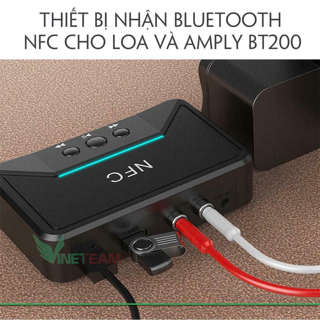Thiết bị nhận Bluetooth, NFC cho loa và Amply BT200 - Hộp Bluetooth âm thanh không dây BT200 NFC V5.0Thông số kỹ thuật: