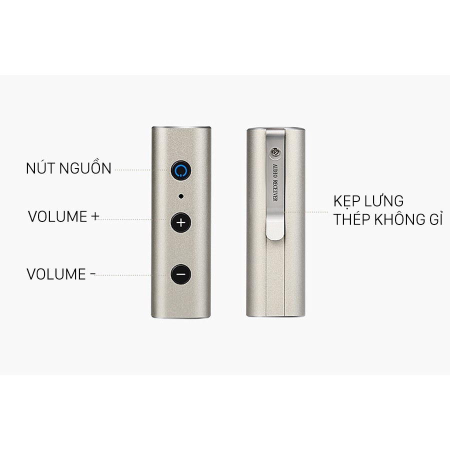 * Bluetooth Receiver nhỏ gọn nhưng lại được trang bị pin sạc dung lượng 200mAh sạc đầy trong 2 giờ có thể sử dụng 8 giờ, thời gian chờ lên tới 60 ngày.