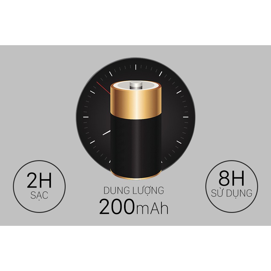 * Dung lượng pin 200 mAh, sạc 2 giờ sử dụng 8 giờ