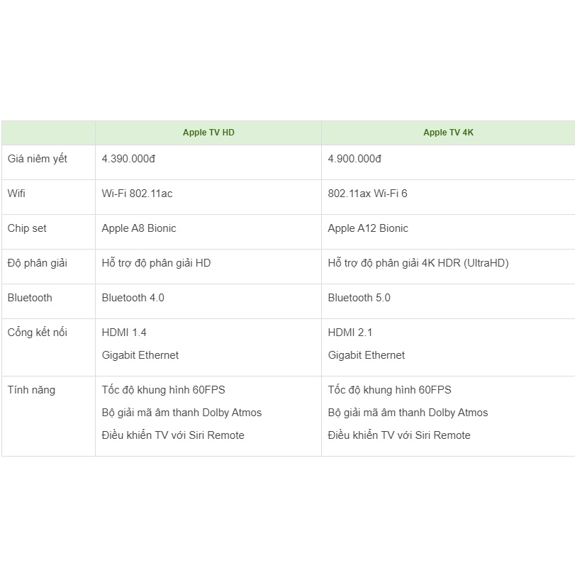 Đặc điểm nổi bậtTruyền tải các nội dung 4K HDR chân thật hơn nhờ chip A 12 Bi0nic qua cổng HDMI.