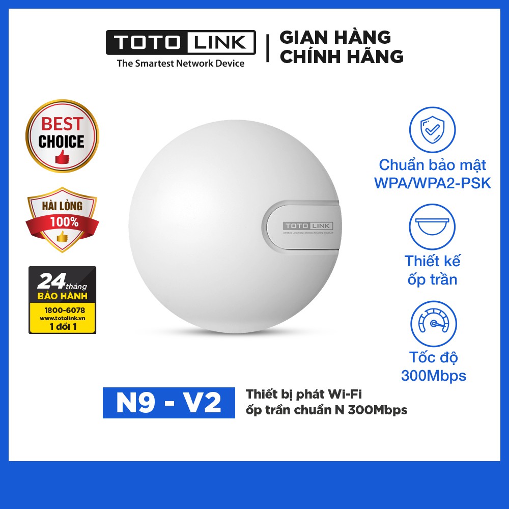 Máy tính & Laptop > Thiết Bị Mạng > Bộ Phát Wifi || Thiết bị phát Wi-Fi ốp trần chuẩn N 300Mbps TOTOLINK N9_V2 Vùng phủ sóng wifi rộng - Hàng chính hãngCòn hàng