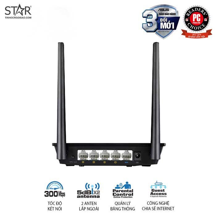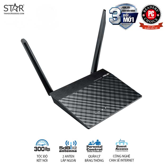 Thiết bị phát Wifi Asus RTN12+B1 Wireless N300Mbps 2 anten Chính Hãng