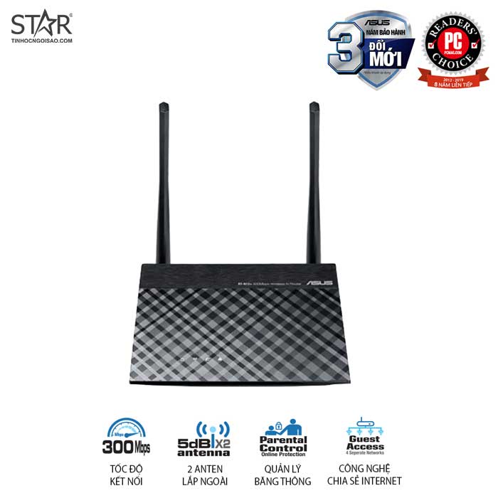Máy tính & Laptop > Thiết Bị Mạng > Bộ Phát Wifi || Thiết bị phát Wifi Asus RT-N12+B1 Wireless N300Mbps - 2 anten Chính HãngCòn hàng