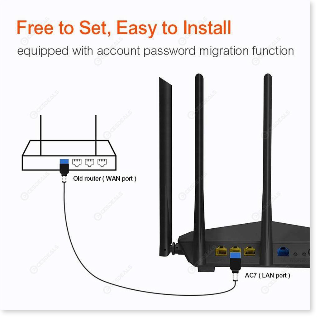 Giới thiệu [Mã 154ELSALE2 giảm 7% đơn 300K] Thiết Bị phát Wifi chuẩn AC 1200Mbps Tenda AC7 (Đen) + 1 CÁP MẠNG - MrPhukien