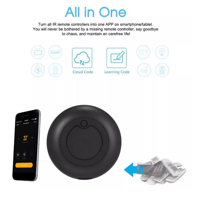 Thiết bị quản lý từ xa các loại điều khiển tivi - máy lạnh - quạt có hồng ngoại trong nhà của bạn+ Thiết bị hoạt động dựa vào nguyên lý tích hợp wifi ví dụ bạn ở xa không có ở nhà và khi kết nối thiết bị với mạng internet bạn có thể vào app trên điện thoại điều khiển thiết bị ví dụ bạn mở app điện thoại nên và thao tác bật tivi là tivi ở nhà sẽ được bật lên