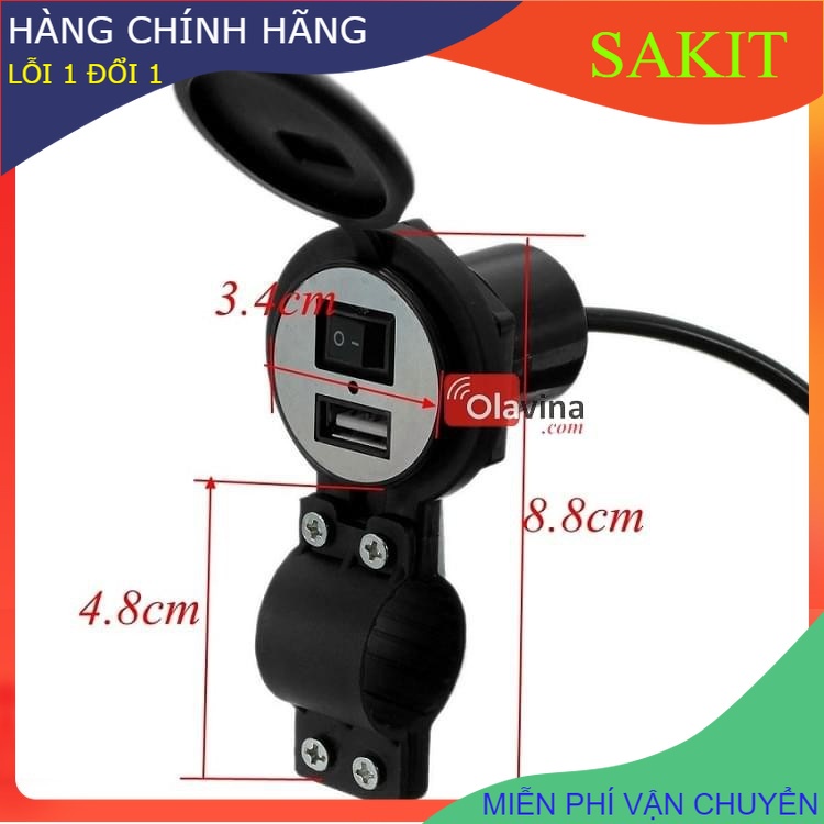 Điện Thoại & Phụ Kiện > Khác || Thiết Bị Sạc - Cóc Sạc - Tẩu sạc Điện Thoại Gắn Trên Xe Máy Chống Nước Có Công Tắc Tắt - Mở đèn báo ledCòn hàng