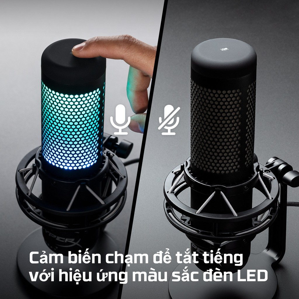 MÔ TẢ SẢN PHẨMHyperX QuadCast™ là micrô độc lập đầy đủ chức năng lý tưởng cho streamer hoặc podcaster đang khát khao tìm kiếm một chiếc micrô tụ có âm thanh chất lượng cao. QuadCast đi kèm với đế chống sốc chống rung riêng để giúp giảm tiếng ồn ào trong cuộc sống hàng ngày và bộ lọc tạp âm tích hợp sẵn để giảm bớt những tiếng nổ khó chịu. Biết ngay trạng thái micrô của bạn như thế nào nhờ đèn báo LED và chỉ cần chạm để tắt tiếng để tránh những sự cố phát thanh khó xử. Với bốn loại cực có thể lựa chọn được, chiếc mic này luôn sẵn sàng cho bất kỳ tình huống thu âm nào và được trang bị núm xoay điều chỉnh khuếch đại nằm ở vị trí tiện lợi để nhanh chóng điều chỉnh độ nhạy đầu vào của mic. Bộ chuyển đổi giá đi kèm vừa với kích cỡ dây 3/8” và 5/8” và tương thích với hầu hết các loại chân đế. Mẫu QuadCast S mang lại các hiệu ứng ánh sáng RGB động có thể tùy biến qua phần mềm HyperX NGENUITY.