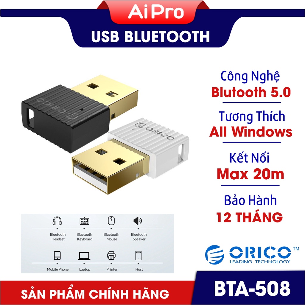 Máy tính & Laptop > Thiết Bị Lưu Trữ > USB & OTG || Thiết bị thu Bluetooth 5.0 Orico/Netlink - Dành cho PC, Laptop - Kết nối các thiết bị ngoại vi Blutooth - BH 12 thángCòn hàng