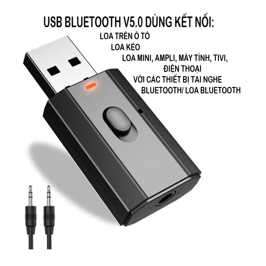 Thiết bị thu phát âm thanh Usb bluetooth 5.0 âm thanh đa chức năng jack cắm 3.5mm cho loa, ô tô, máy tính...có mic