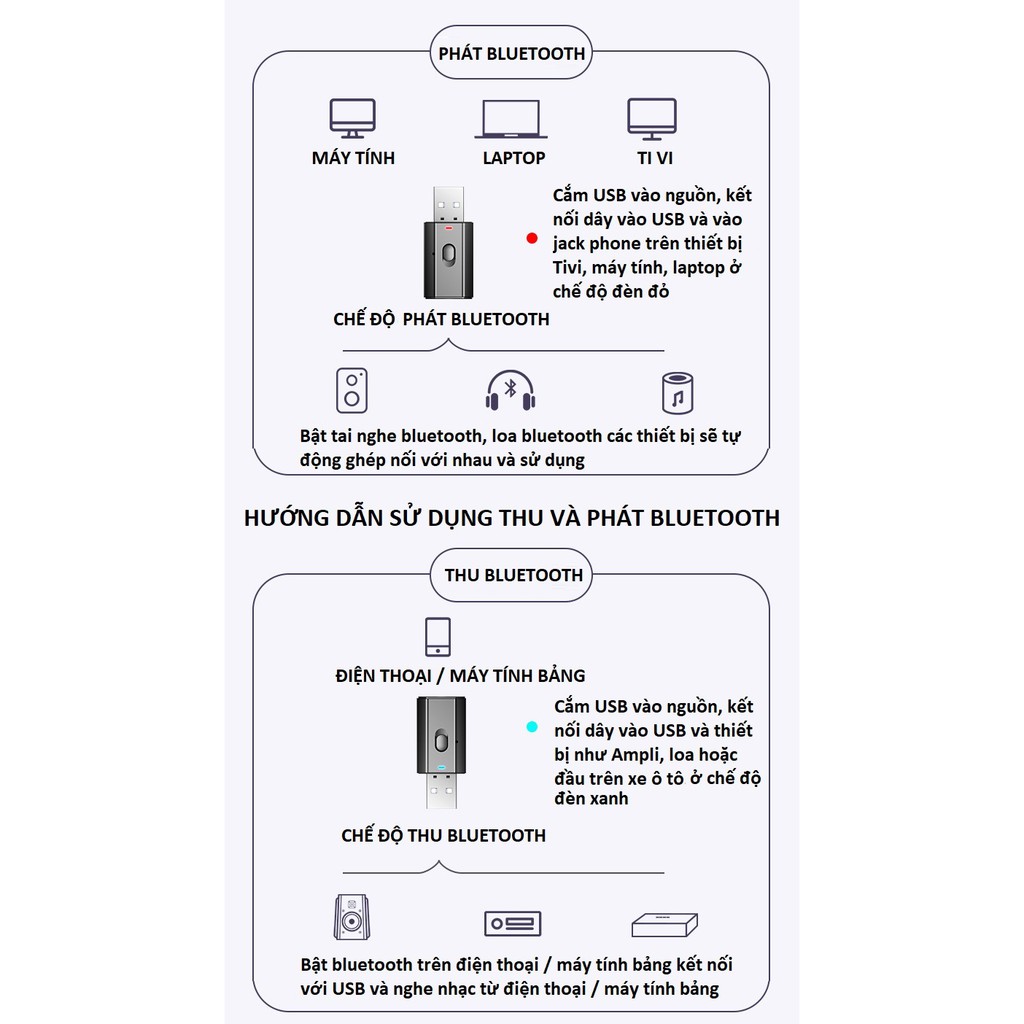 - USB bluetooth 5.0- Phát bluetooth truyền âm thanh không dây từ Tivi, máy tính, laptop ... đến tai nghe bluetooth, loa bluetooth...