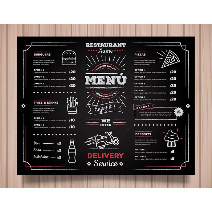 Thiết kế + in menu theo yêu cầuLưu ý: Đọc kĩ mô tả sản phẩm trước khi đặt hàng