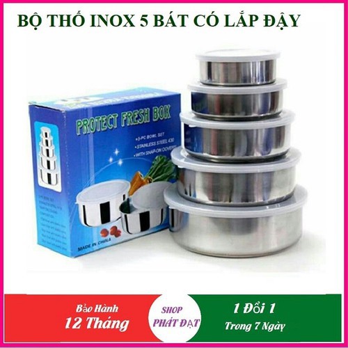 Bộ thố 5 bát inox -Combo 5 bát inox có nắp đậy - Bát inox