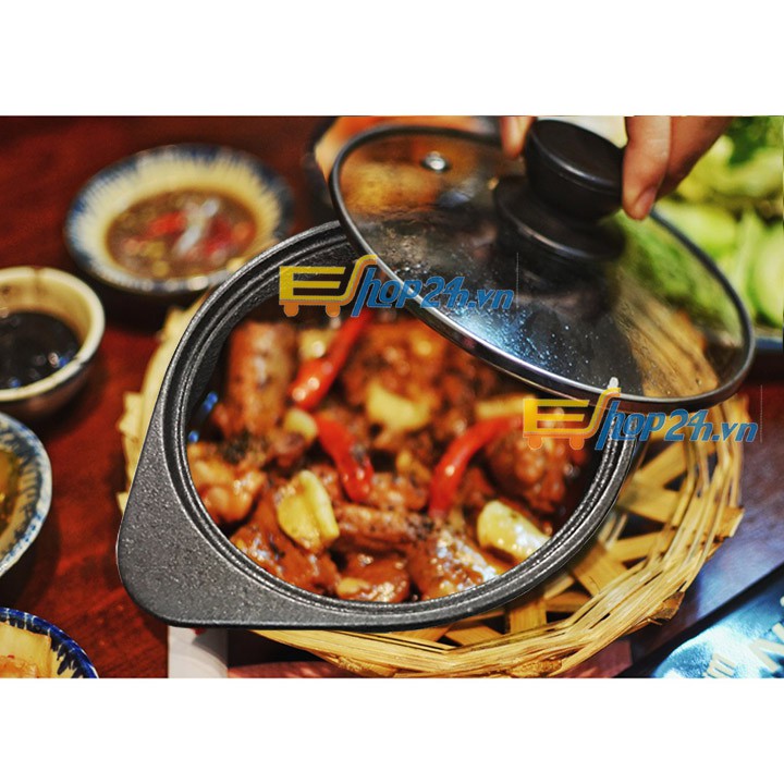 Nhà cửa & Đời sống > Dụng cụ nhà bếp > Nồi || Thố gang kho quẹt chống dính nắp kính Vạn LợiCòn hàng