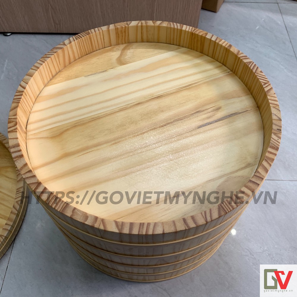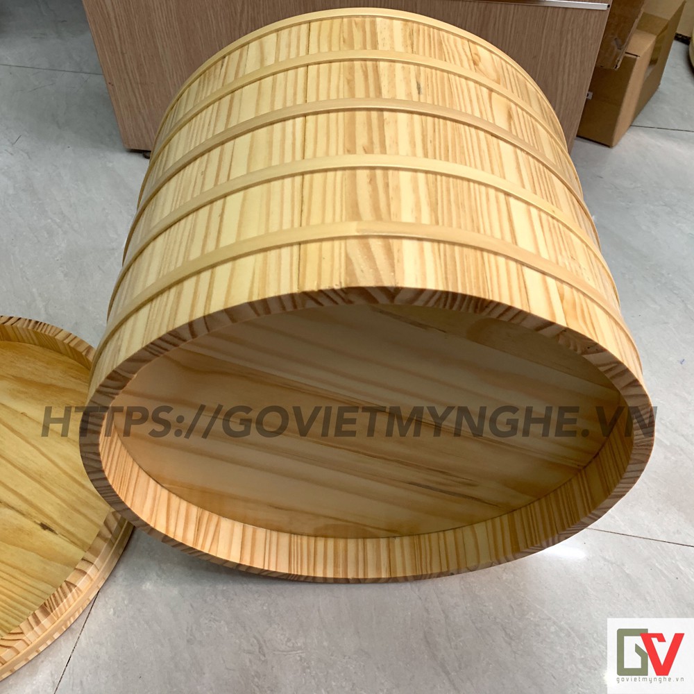 Thố gỗ đánh cơm Sushi hay Thố gỗ trang trí Φ 33cm, Cao 25cm + Nắp gỗ