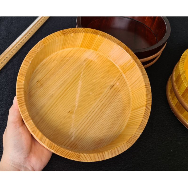 Hàng nội địa Nhật, chưa qua sử dụng nhưng có trầy do vận chuyển, sản phẩm y như ảnh chụp. Dùng cho hàng quán chuyên làm shushi. Đường kính 20cm thì phù hợp để trang trí món ăn . Số 1 và 2 sâu lòng 4,5 cm, số 3 sâu lòng 6 cm. Nếu làm gáo nước thì vui lòng không ngâm thố gỗ trong nước liên tục.Giá OXI