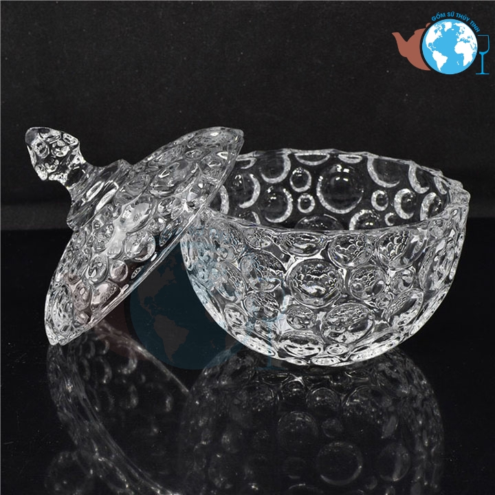 Thố mứt thủy tinh kiểu dáng chấm bi trắng và vàng, thủy tinh cao cấp đựng mứt -2032-5