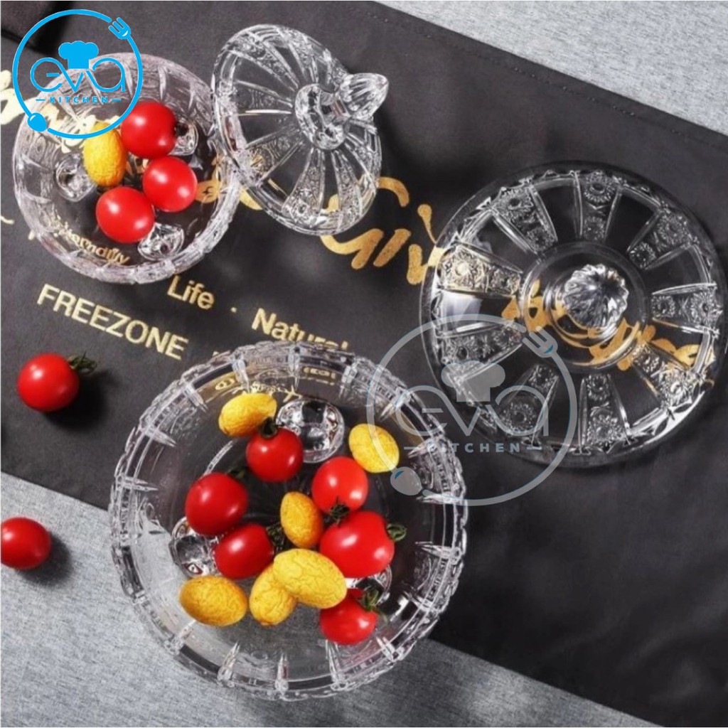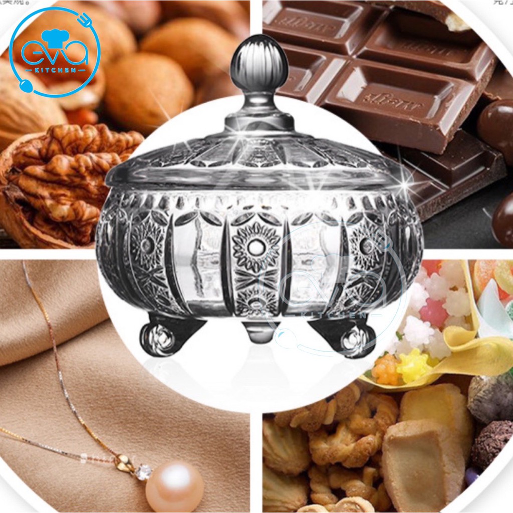 Nhà cửa & Đời sống > Bộ đồ bàn ăn > Dĩa || Thố Mứt Thuỷ Tinh Pha Lê 3 Chân Hoạ Tiết Hoa Nổi Nhỏ Phong Cách Royal Sang Trọng / Thố Mứt Tết Nhỏ Deli Tiệp T15 M3171Còn hàng