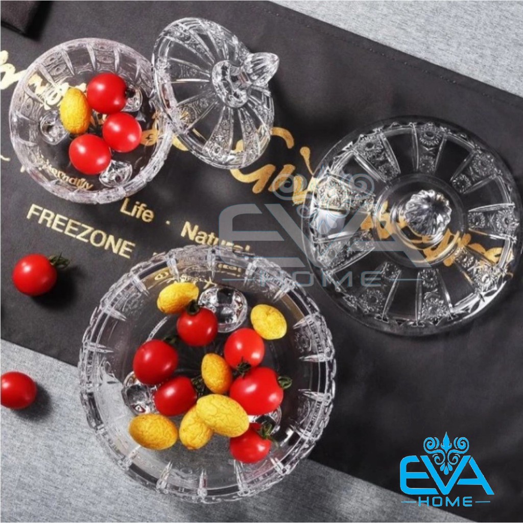 Nhà cửa & Đời sống > Bộ đồ bàn ăn > Dĩa || Thố Mứt Thuỷ Tinh Pha Lê 3 Chân Hoạ Tiết Hoa Nổi Lớn Phong Cách Royal Sang Trọng / Thố Mứt Tết Lớn Deli Tiệp T16 M3170Còn hàng