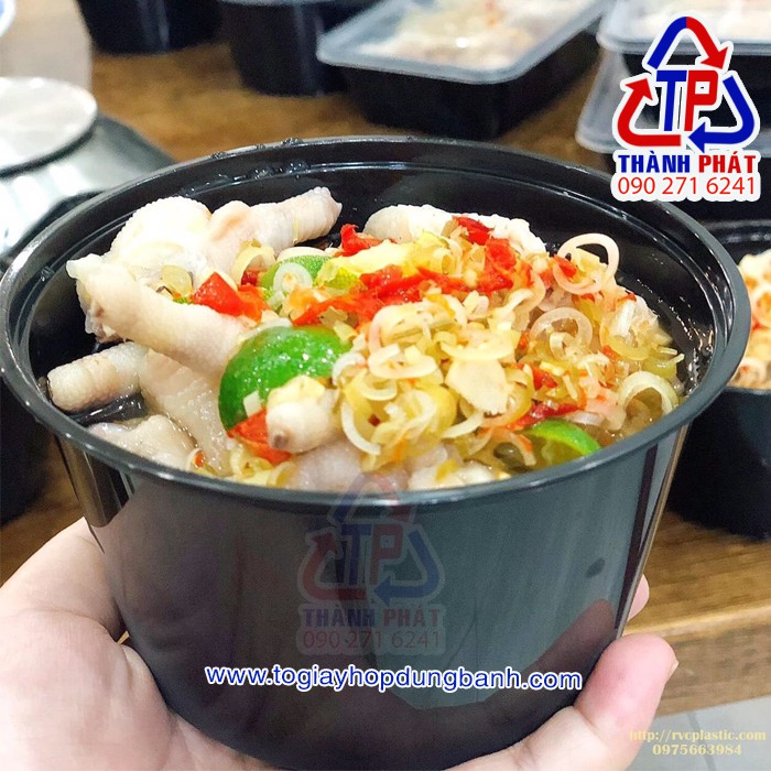 Thố nhựa đen 750ml dùng đựng chân gà sả tắc