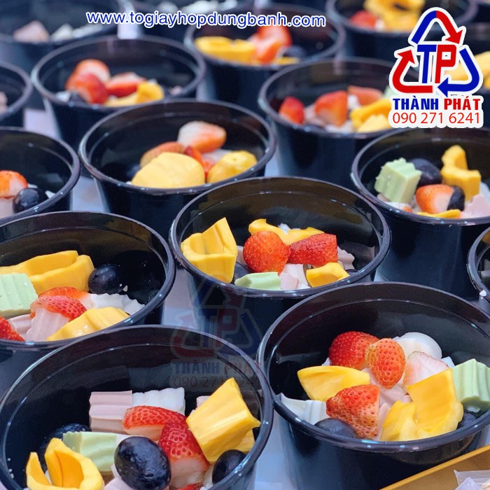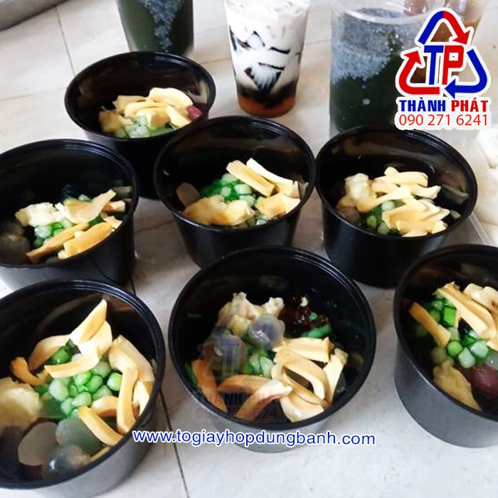 Thố nhựa đen 750ml dùng đựng chè khúc bạch