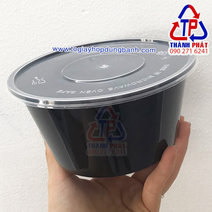 Thố nhựa đen 750ml có nắp – Tô nhựa đen 750ml đựng thức ăn nóng lạnhKích thước :