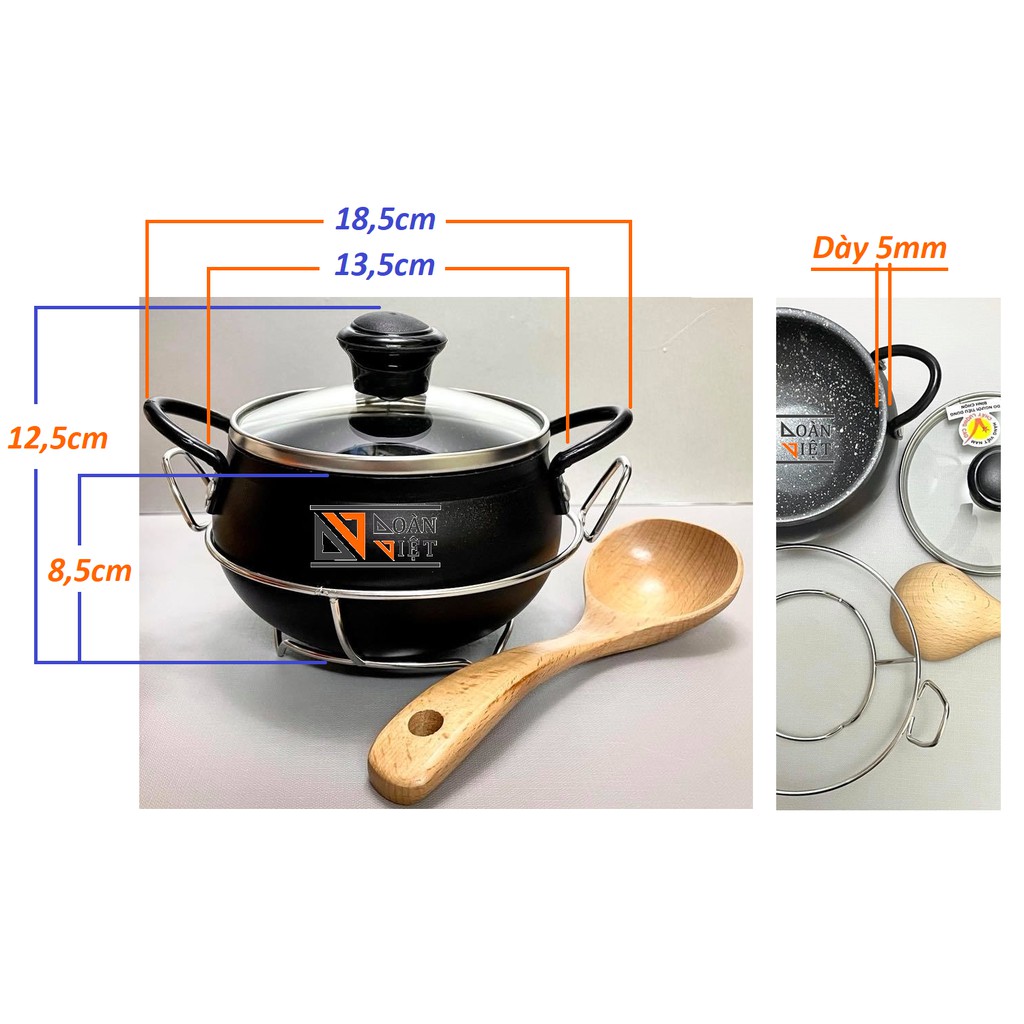 Thố Nồi cơm niêu mẫu MỚI- HỢP KIM NHÔM VÂN ĐÁ CHỐNG DÍNH [tặng ĐẾ LÓT INOX+ MUỖNG GỖ CAOCẤP]. Dùng KHO QUẸT, CƠM CHÁY