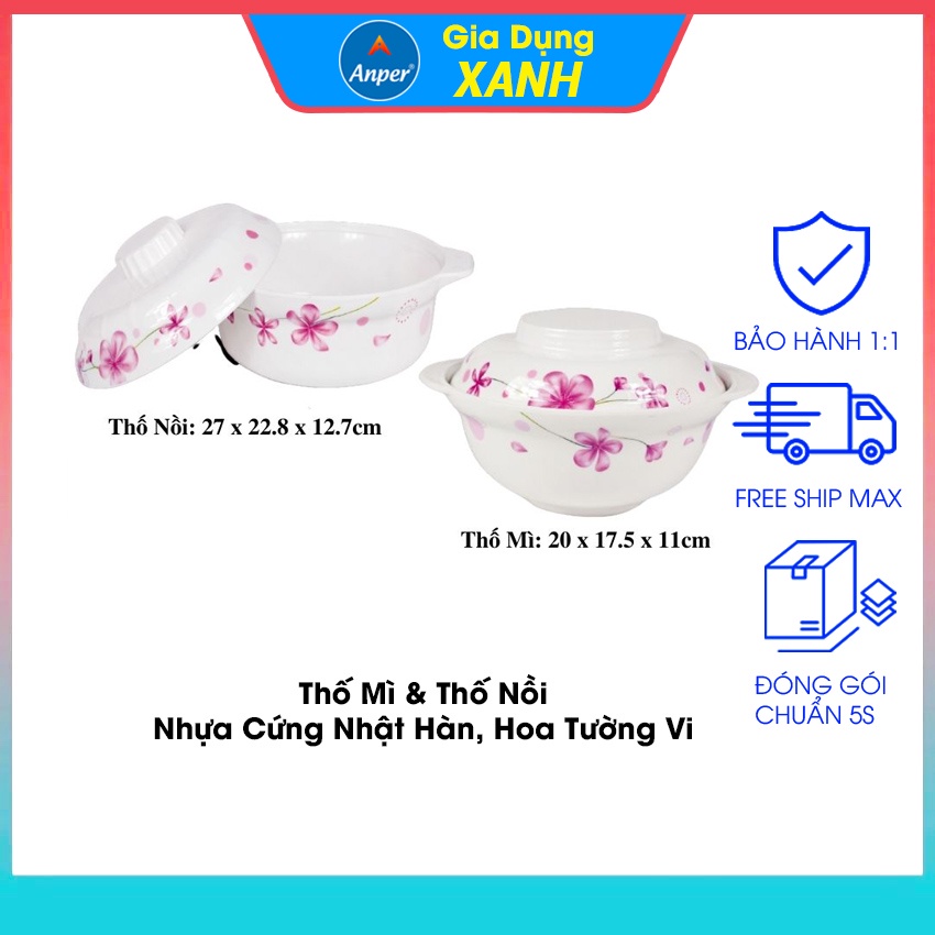 • Kích thước: Thố Nồi 27 x 22.8 x 12.7cm; Thố Mì 20 x 17.5 x 11cm