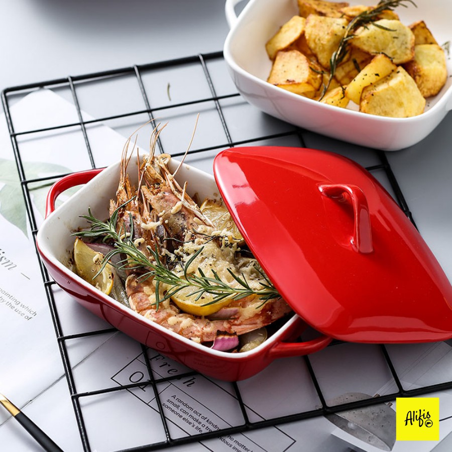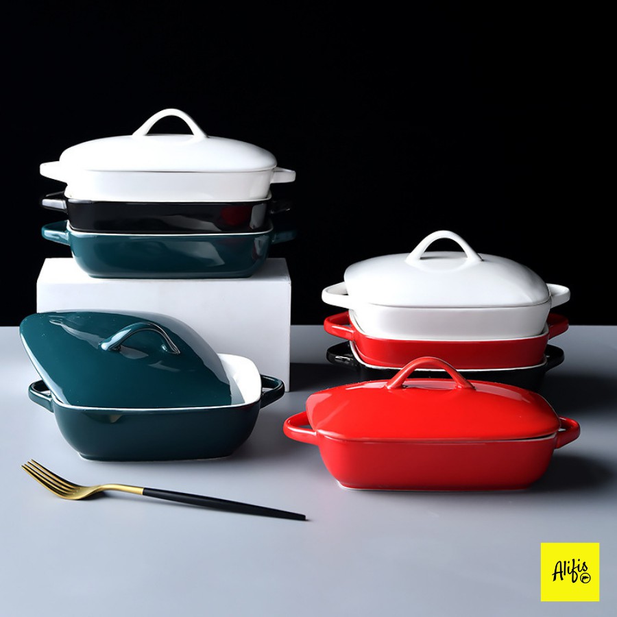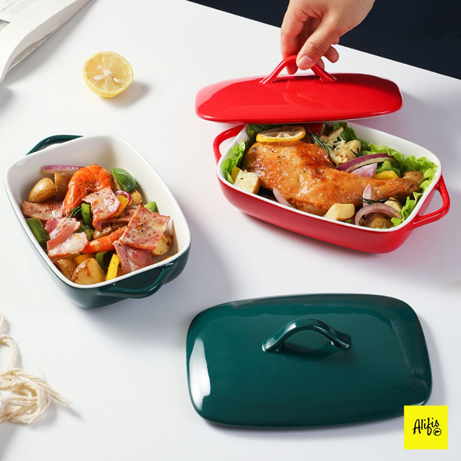 Thố nướng bằng sứ cao cấp có nắp - 500 & 700ml - Dùng nướng đồ ăn tiện dụng