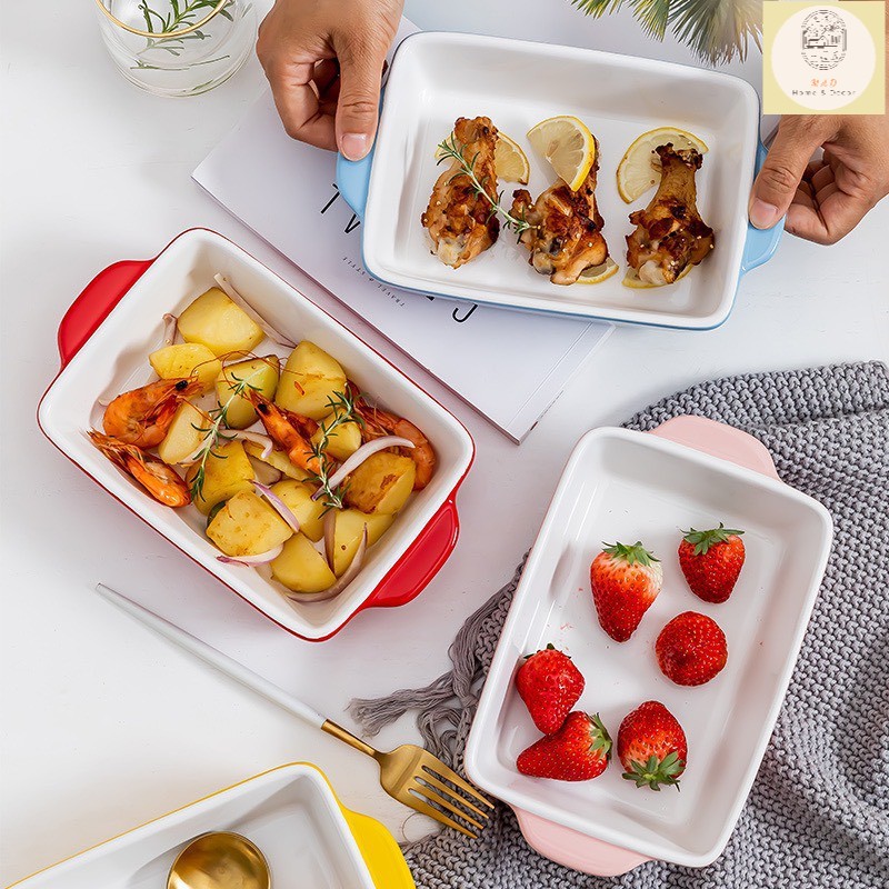 Sản phẩm: Thố nướng, đĩa nướng decor hình chữ nhật bằng gốm tráng men nhiều màu