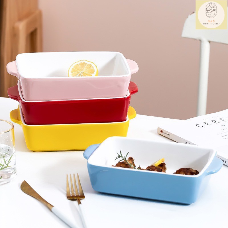 Nhà cửa & Đời sống > Bộ đồ bàn ăn > Tô || Thố nướng sâu lòng, đĩa nướng 5.4cm decor hình chữ nhật bằng gốm tráng men xanh,đỏ,hồng ,vàng - Lòng TrắngCòn hàng