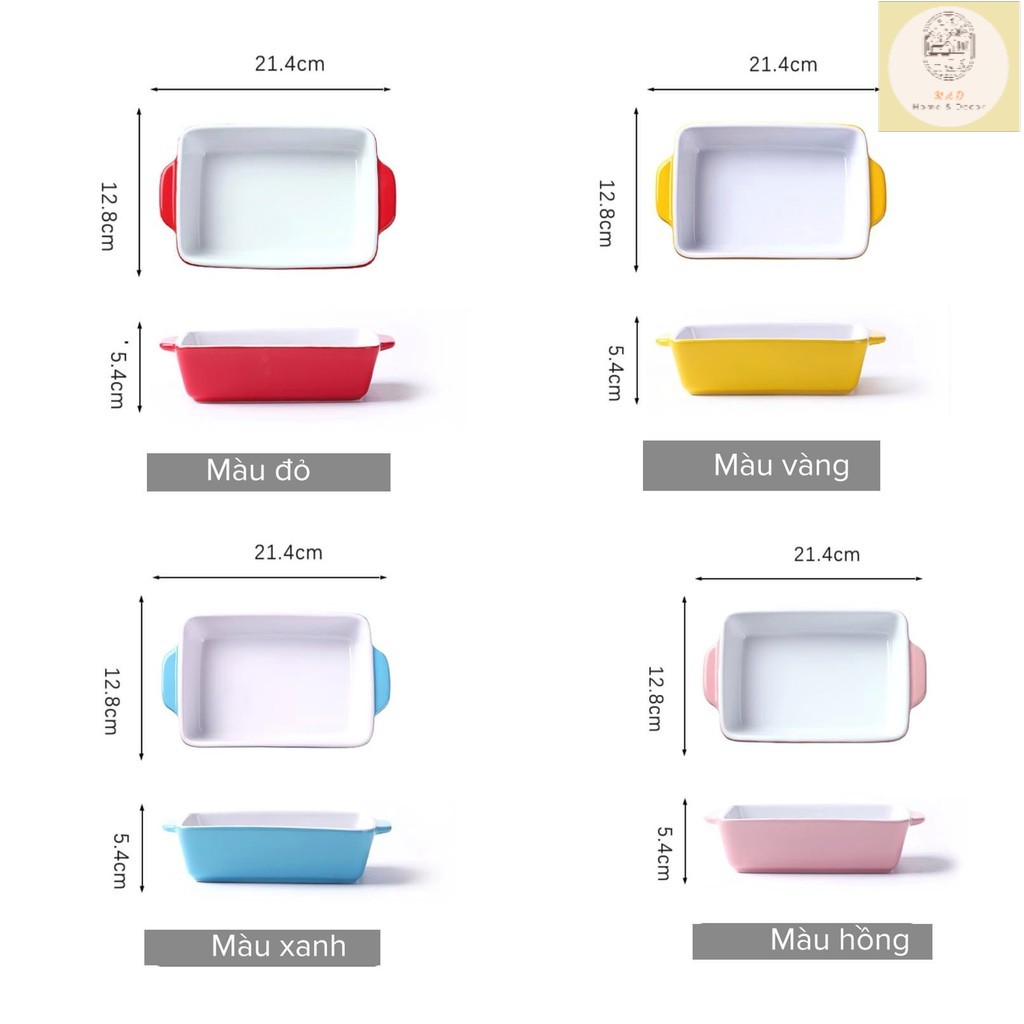 Giới thiệu Thố nướng sâu lòng, đĩa nướng 5.4cm decor hình chữ nhật bằng gốm tráng men xanh,đỏ,hồng ,vàng - Lòng Trắng